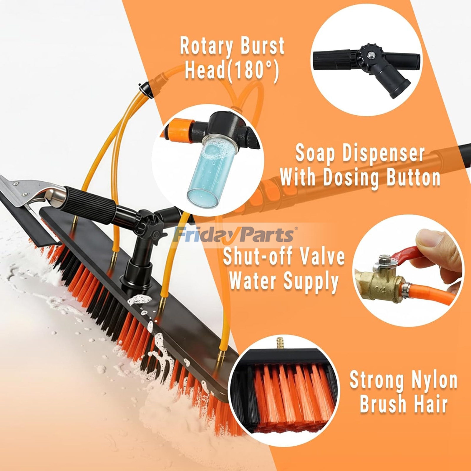 2-in-1 Cleaning Brush with Squeegee for Window & Solar Panel - 11.81" Extra-Wide Head with 4 Jets, Telescoping 12FT Water-Fed Pole with On-Hose Soap Dispenser